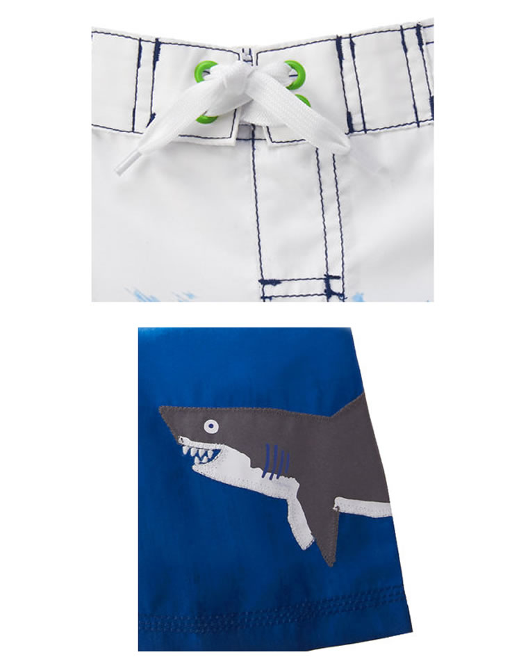 夏らしいカラーとサメ&潜水艦のアップリケがかっこいいウエストは背中側にゴムが入っています。