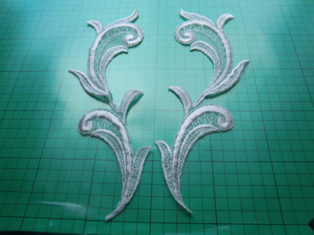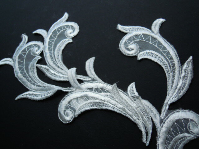 オフシロのオーガンジのブライダルモチーフレース 2組4枚縦(高さ)約23c 横幅(最長)6.5cあります。